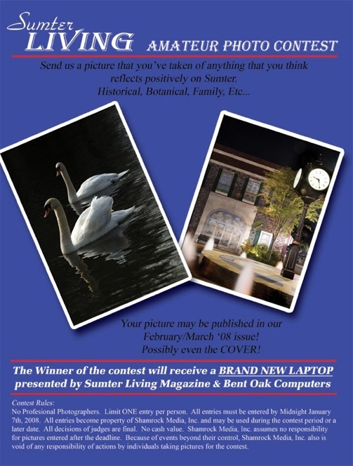 To submit your entry, please email a copy of your photo along with your name, address, telephone number, and email address to info@sumterlivingmagazine.com.